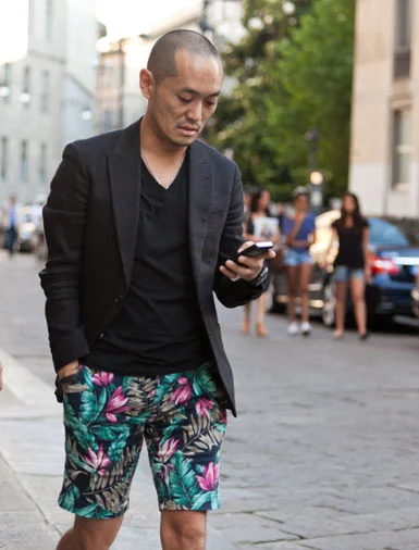 If you are looking for something that has a little more POP. You can find some floral prints that are bright and have a bit more color like these shorts. Just make sure you mix it with something  simple like a black/white v-neck.
